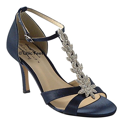 Chic Feet offer Chic Feet Navy Blue Satin Wedding Bridal Evening Prom Diamante Sandals - UK Size 7. This awesome product currently limited units, you can buy it now for £31.50, You save -